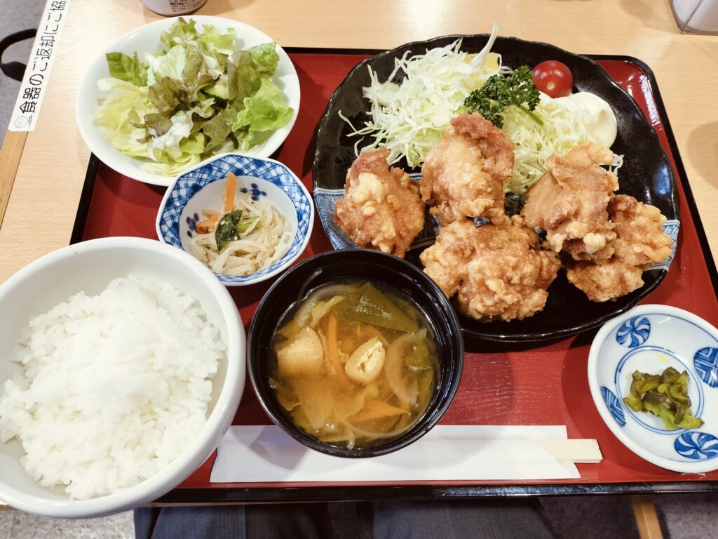 現場近くの最強ランチ!「〇〇食堂」さんの唐揚げ定食🍚